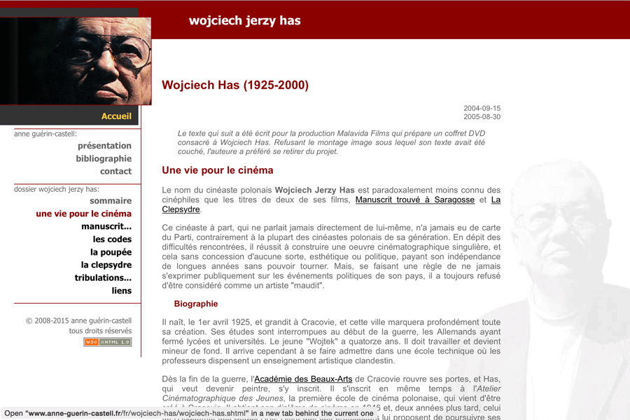 site consacré au cinéaste polonais Wojeciech Jerzy Has